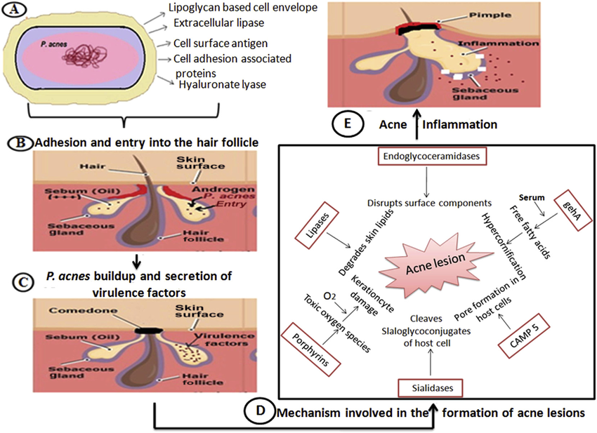 - Kumar, B., Pathak, R., Mary, P. B., Jha, D., Sardana, K., & Gautam, H. K. (2016). New insights into acne pathogenesis: Exploring the role of acne-associated microbial populations. Dermatologica sinica, 34(2), 67-73.